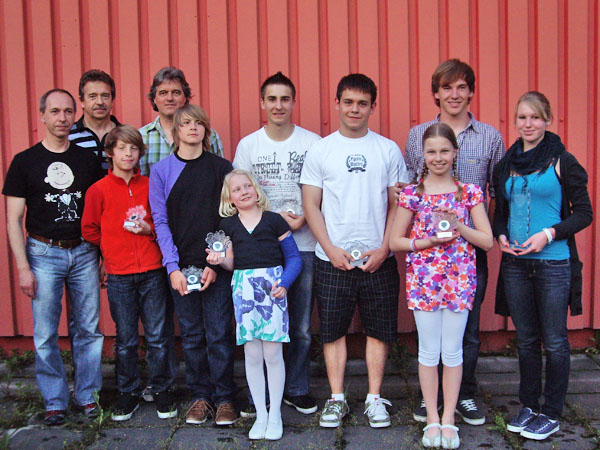 Die geehrten Sportler mit den Trainern Armin, Achim und Charles